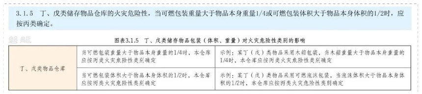 2、丁、戊类储存物品仓库的火灾危险性,当可燃包装重量大于物品本身重量1/4或可燃包装体积大于物品本身体积的1/2时,应按丙类确定。