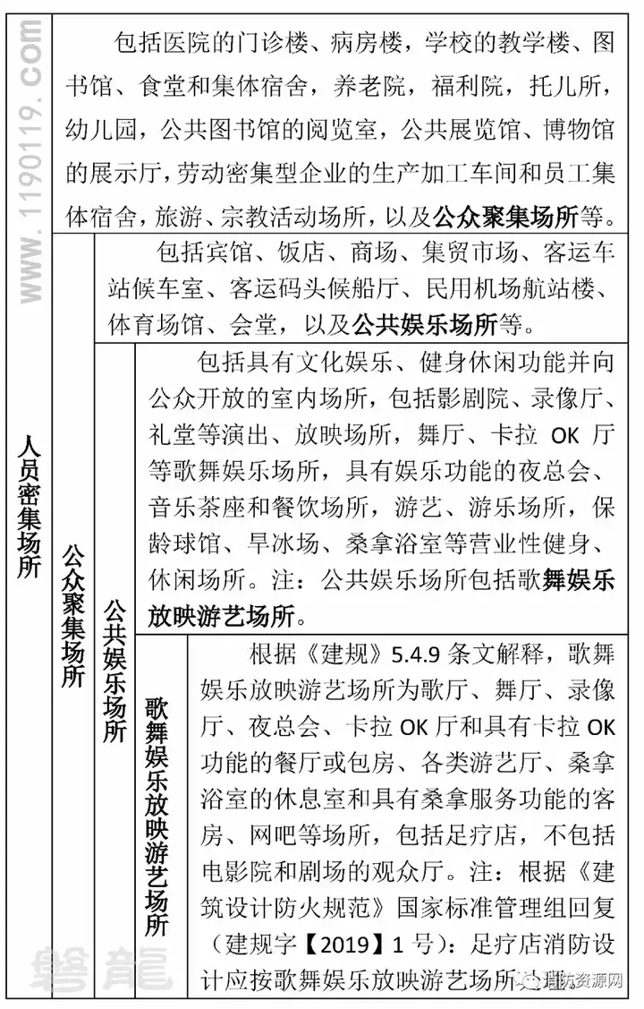 石峥嵘:美容院、理发店(发廊)、休闲中心、酒吧(清吧)、棋牌室、茶馆(茶座)、咖啡厅、饮品店、餐馆、洗浴、澡堂、足浴(足疗)、按摩、健身房、保龄球馆、台球馆等,这类场所的建筑防火定性,一直是争议较大的问题,这类场所中,大部分属于公共娱乐场所,部分属于歌舞娱乐放映游艺场所。 规范对歌舞娱乐放映游艺场所的设置楼层、厅室面积以及防火分隔措施等,提出了限制性或加强性要求,以利人员疏散和逃生,因此,准确定性这类场所,尤为重要! 本文共六章,全面阐述这类场所的定性原则,以及消防设施要求! 详解如下: 一、公共娱乐场所和歌舞娱乐放映游艺场所的概念: 公共娱乐场所包含了歌舞娱乐放映游艺场所,两者均属于公众聚集场所和人员密集场所(四者的从属关系附文末),相关概念及区别应用,参见专题:区别及概念-人员密集场所?公众聚集场所?公共娱乐场所?歌舞娱乐放映游艺场所! 二、歌舞娱乐放映游艺场所的建筑防火及消防设施要求: 歌舞娱乐放映游艺场所具有较大的火灾危险性,属于火灾高风险场所,《建筑设计防火规范》对这类场所的设置楼层、厅室面积以及防火分隔措施等,提出了限制性或加强性要求,通过提高此类场所的防火设计指标,以利人员疏散和逃生。这类场所的建筑防火及消防设施要求,详见专题分解:歌舞娱乐放映游艺场所-建筑防火及消防设施要求! 三、公共娱乐场所的建筑防火及消防设施要求: 歌舞娱乐放映游艺场所以外的公共娱乐场所,其安全疏散、平面布置、防火分隔等,并不需要执行《建规》5.4、5.5章节有关“歌舞娱乐放映游艺场所”的规定,通常情况下,可参照公共建筑的相关要求处置。 但是,《建规》第8章“消防设施”的相关要求及条文解释,对娱乐场所的范围定义模糊,公共娱乐场所的消防设施,宜参照“歌舞娱乐放映游艺场所”执行,详细解说,可参专题:“健身房、保龄球馆”等场所,自动灭火、火灾自动报警等消防设施的要求! 四、公共娱乐场所和歌舞娱乐放映游艺场所的定性原则: 歌舞娱乐放映游艺场所的定性,通常分为两类: 1、规范明确定性的歌舞娱乐放映游艺场所: 《建筑设计防火规范》第5.4.9条,明确了歌舞娱乐放映游艺场所的具体范围:歌舞厅、录像厅、夜总会、卡拉OK厅(含具有卡拉OK功能的餐厅)、游艺厅(含电子游艺厅)、桑拿浴室(不包括洗浴部分)、网吧等(不含剧场、电影院)。 2、有些场所规范没有明确,根据业态特点可能需要定性为歌舞娱乐放映游艺场所: 娱乐场所业态复杂,规范不可能穷尽列举,有些场所规范没有明确,根据业态特点可能需要定性为歌舞娱乐放映游艺场所。 比如,《建筑设计防火规范》标准管理组《关于足疗店消防设计问题》的复函(建规字20191号),就补充说明了歌舞娱乐放映游艺场所的定性原则:业态特点与《建筑设计防火规范》第5.4.9条所述相同的娱乐场所,也应定性为歌舞娱乐放映游艺场所。相关解读,可参考专题:足疗、按摩场所-建筑防火及消防设施要求! 五、分类详解: 1、美容院: 美容院是为人们提供美容护理、皮肤保健等内容的美容服务场所,单纯的美容院可不划为娱乐场所,具备休闲、娱乐功能的美容院,属于公共娱乐场所,同时需要结合前面所述的定性原则,确定是否属于歌舞娱乐放映游艺场所。 2、理发店、发廊: 单纯以理发、美发为主的理发店、发廊,即使附属头部按摩和美容等功能,也可以不划为娱乐场所,具有休闲、娱乐或按摩等附属功能的理发店、发廊,属于公共娱乐场所,同时需要结合前面所述的定性原则,确定是否属于歌舞娱乐放映游艺场所。 3、休闲中心: 休闲中心的概念宽泛,常见的休闲内容也不过是足浴、按摩、桑拿等类似功能,可根据具体功能确定,对于没有明确功能的休闲中心,实际功能的机动性较大,宜统一按歌舞娱乐放映游艺场所确定。 4、酒吧、清吧: 酒吧是提供酒类消费的场所,通常都会附带娱乐活动,同时,《建设工程消防设计审查验收管理暂行规定》(建设部令 第51号)中,酒吧和歌舞娱乐放映游艺场所并列,因此,酒吧应属于歌舞娱乐放映游艺场所。 需要说明的是,不提供娱乐功能,类似茶馆的清吧,可酌情定性。 5、茶馆(茶座)、咖啡厅、饮品店: 对于纯商务或聊天类的茶馆(茶座)、咖啡厅、饮品店,可以不划分为公共娱乐场所,但具有娱乐功能的茶馆(茶座)、咖啡厅、饮品店等,应属于公共娱乐场所,而且,在《建设工程消防设计审查验收管理暂行规定》(建设部令 第51号)中,具有娱乐功能的茶馆和咖啡厅,与歌舞娱乐放映游艺场所并列,因此,这类茶馆和咖啡厅,宜列为歌舞娱乐放映游艺场所,或根据其实际功能,依据以上定性原则酌情确定。 6、棋牌室: 棋牌室属于公共娱乐场所,具备其他功能的棋牌室,整体应按较高风险等级定性。比如茶馆中附属有棋牌室,则茶馆应按公共娱乐场所定性。实际应用中,应根据其实际功能,依据以上定性原则酌情确定,比如,具有游艺、卡拉OK等类似功能的棋牌室,属于歌舞娱乐放映游艺场所。 7、餐馆: 餐馆属于餐饮场所,具有娱乐功能的餐饮场所,属于公共娱乐场所,具有卡拉OK等类似娱乐功能的餐厅或包房等,属于歌舞娱乐放映游艺场所。 餐馆等餐饮场所的建筑防火及消防设施,参见专题:餐饮场所-建筑防火及消防设施要求! 8、洗浴、澡堂: 单纯的洗浴、澡堂,并不需要划为公共娱乐场所,具备休闲、娱乐等